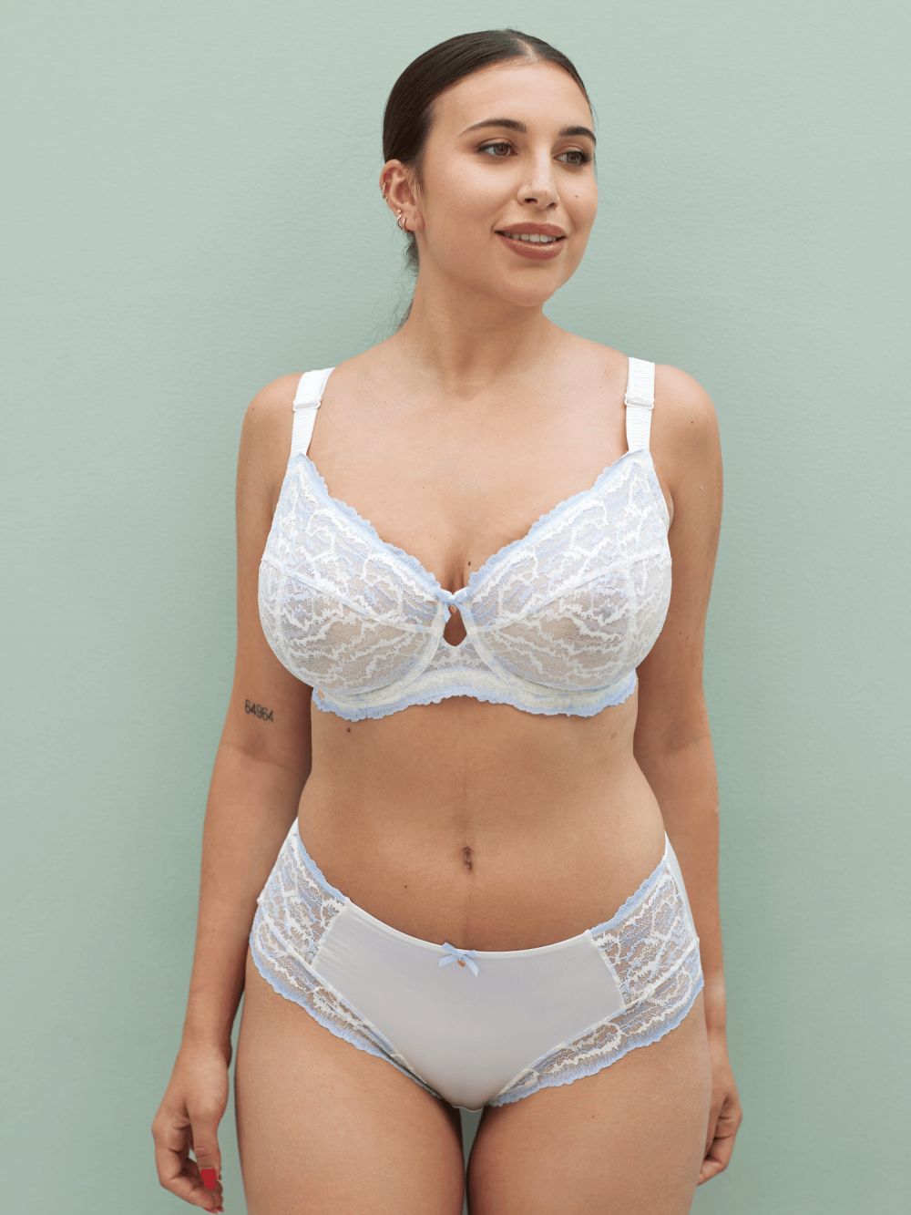 The lace is applied to the back leg opening (allowing for an elastic-free finish that combines comfort and invisibility)