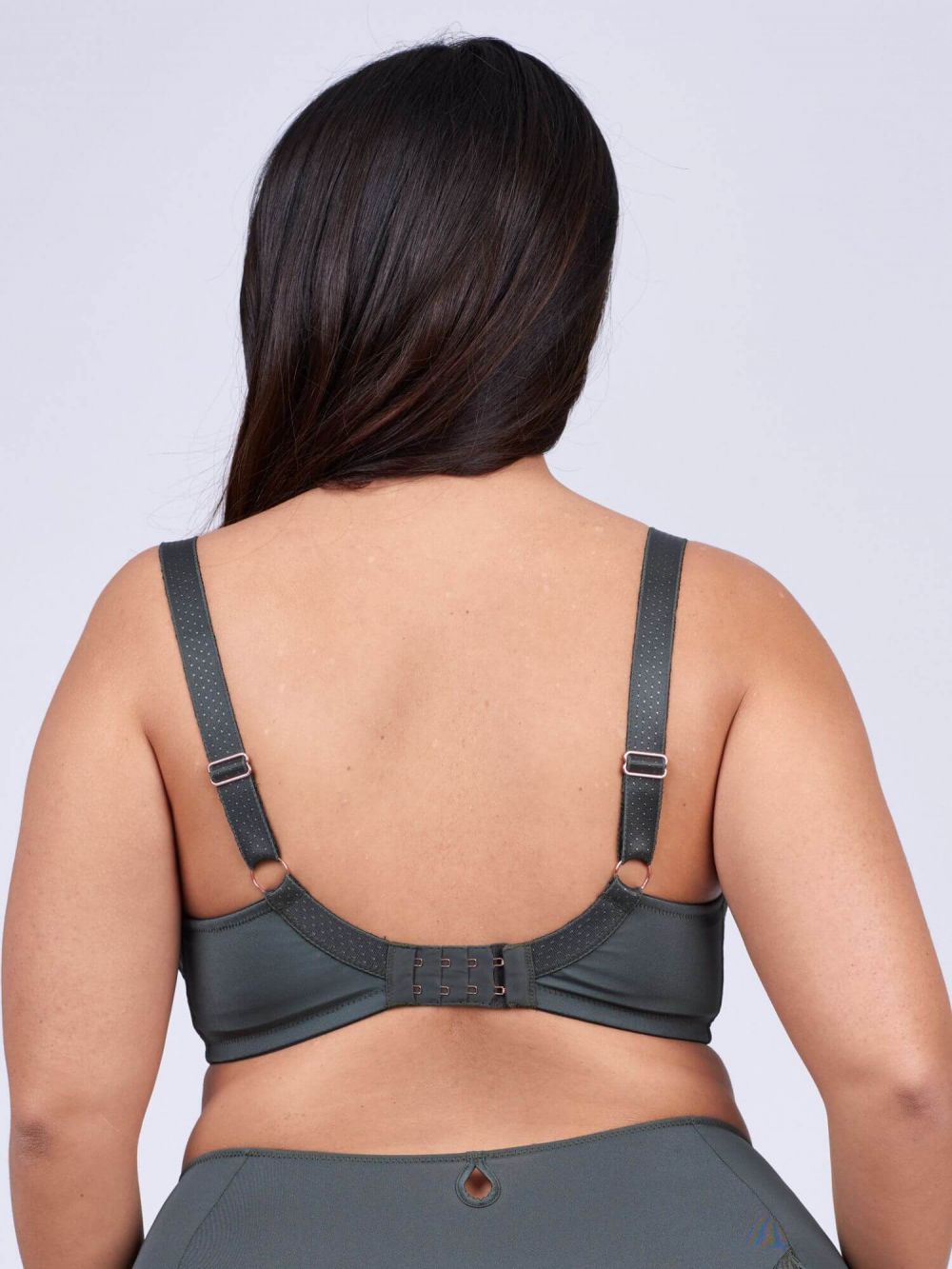 Reinforced support: lined back, ½ moon inside cups, width of straps and height of back fastening adapted