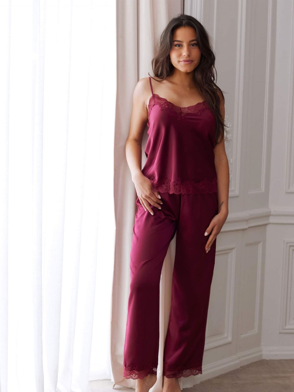 La dentelle est appliquée tout le long du décolleté devant ainsi qu’en bas du top devant et dos